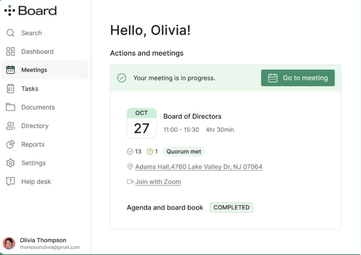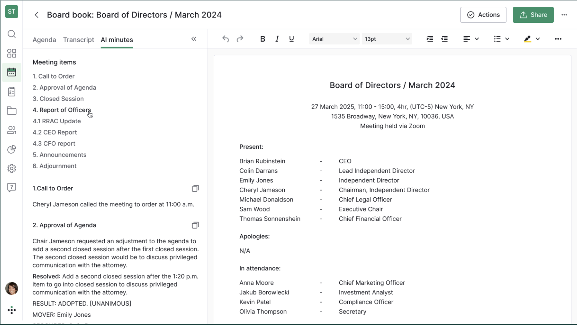 - Robust toolset – calendar, notes, notifications, secure messaging, voting, and action-item tracking.